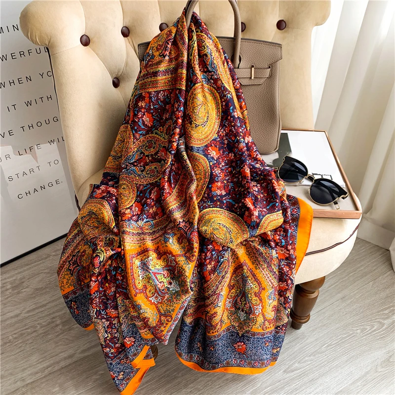 Роскошный шелковый шарф, Женские платки, шали, женские шарфы с принтом, шали из пашмины, хиджаб, пляжные палантины