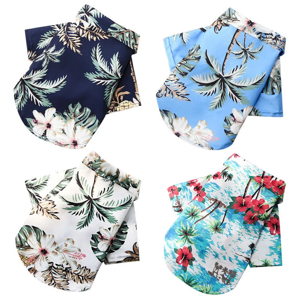 Летняя одежда для домашних животных, повседневная одежда для собак, рубашки для щенков, модная пляжная футболка с цветочным принтом пальмы Гавайи для маленьких собак, кошек, одежда