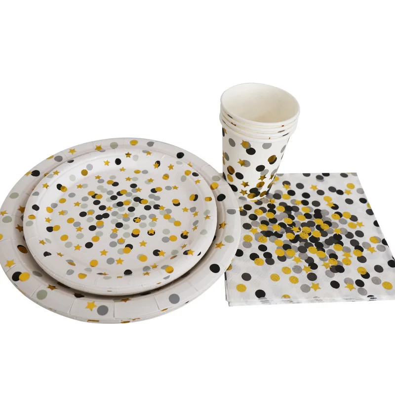 Высококачественная Черная Бронзовая звезда, принадлежности для вечеринок, бумажная тарелка, бумажная чашка, салфетка, украшение для дня рождения, одноразовая посуда