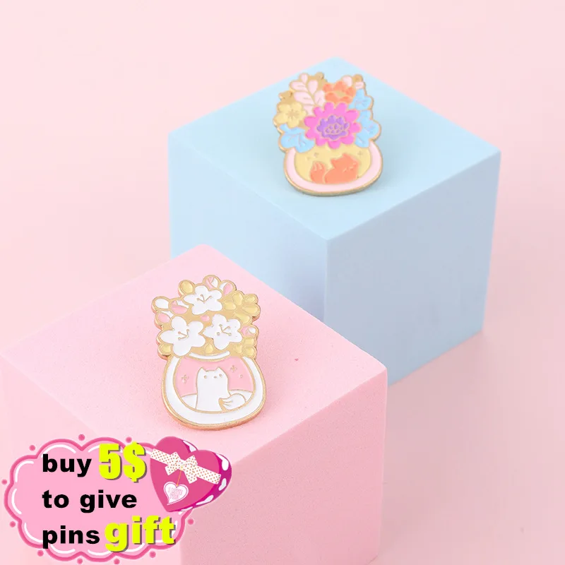 Эмалированная заколка в виде спящего котенка в цветочном горшке оптовая продажа с изображением кактуса цветка брошь на рюкзак для шляпы отворота мультяшная заколка ювелирные изделия подарок