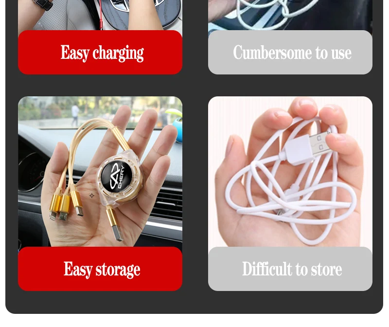 3 в 1 Выдвижной кабель Type C Micro USB, кабель для зарядки и передачи данных для Chery Tiggo 5 2 3 7 PRO 8 5X IQ QQ Fulwin Face Arrizo A1
