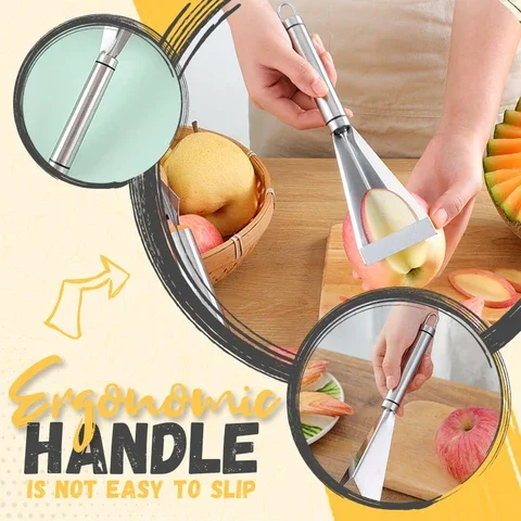 Многофункциональность:Уникальный дизайн, функции включают резку и пилинг. Незаменимый удобный кухонный инструмент, который может легко разрезатьЯблоки, арбузы, огурцы, фрукты дракона,И других фруктов.
