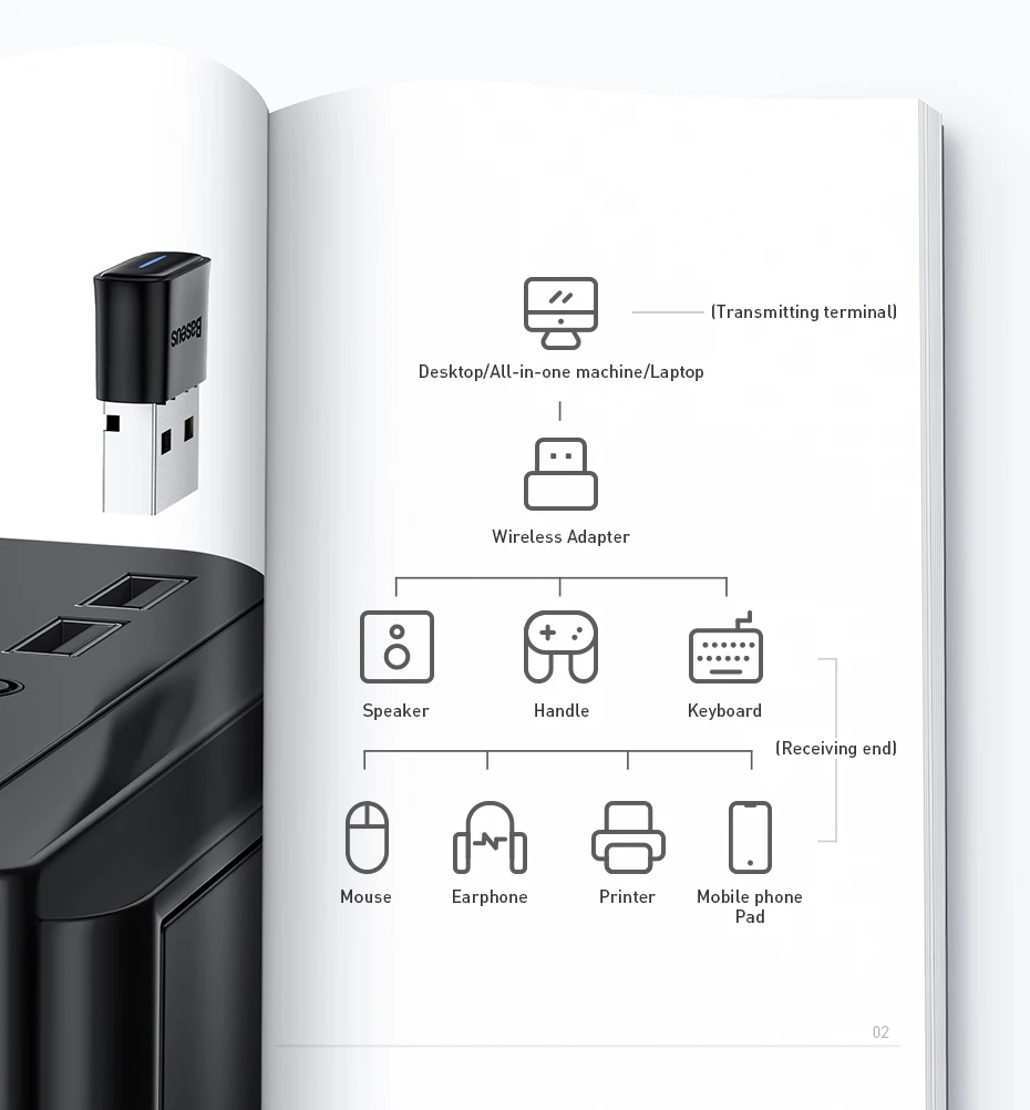Baseus USB Bluetooth адаптер ключ 5,1 приемник передатчик для ПК динамик беспроводная мышь USB передатчик музыка аудио адаптер