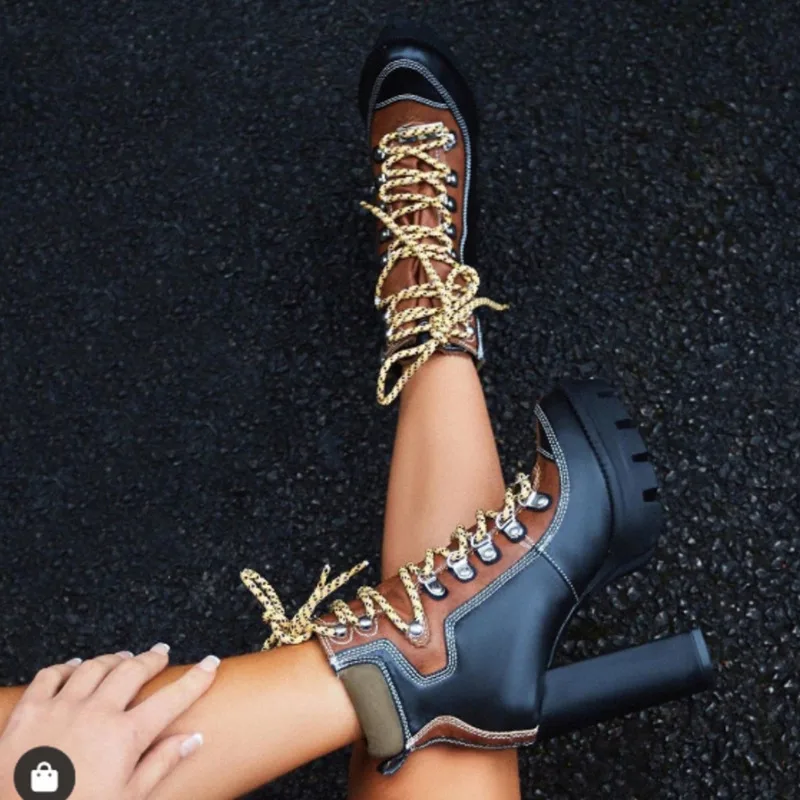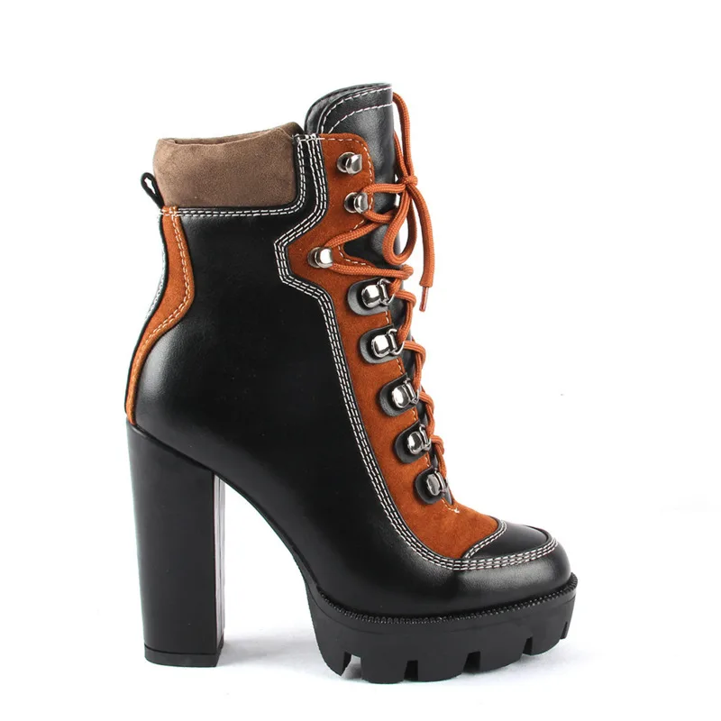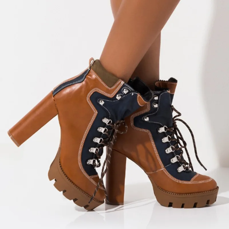 Женские ботильоны на шнуровке, ботинки из искусственной кожи на платформе, мотоциклетные ботинки, женские ботинки на очень высоком толстом каблуке, большой размер 43