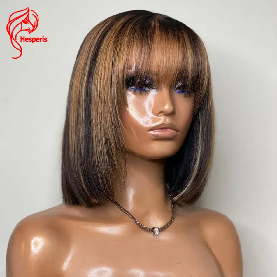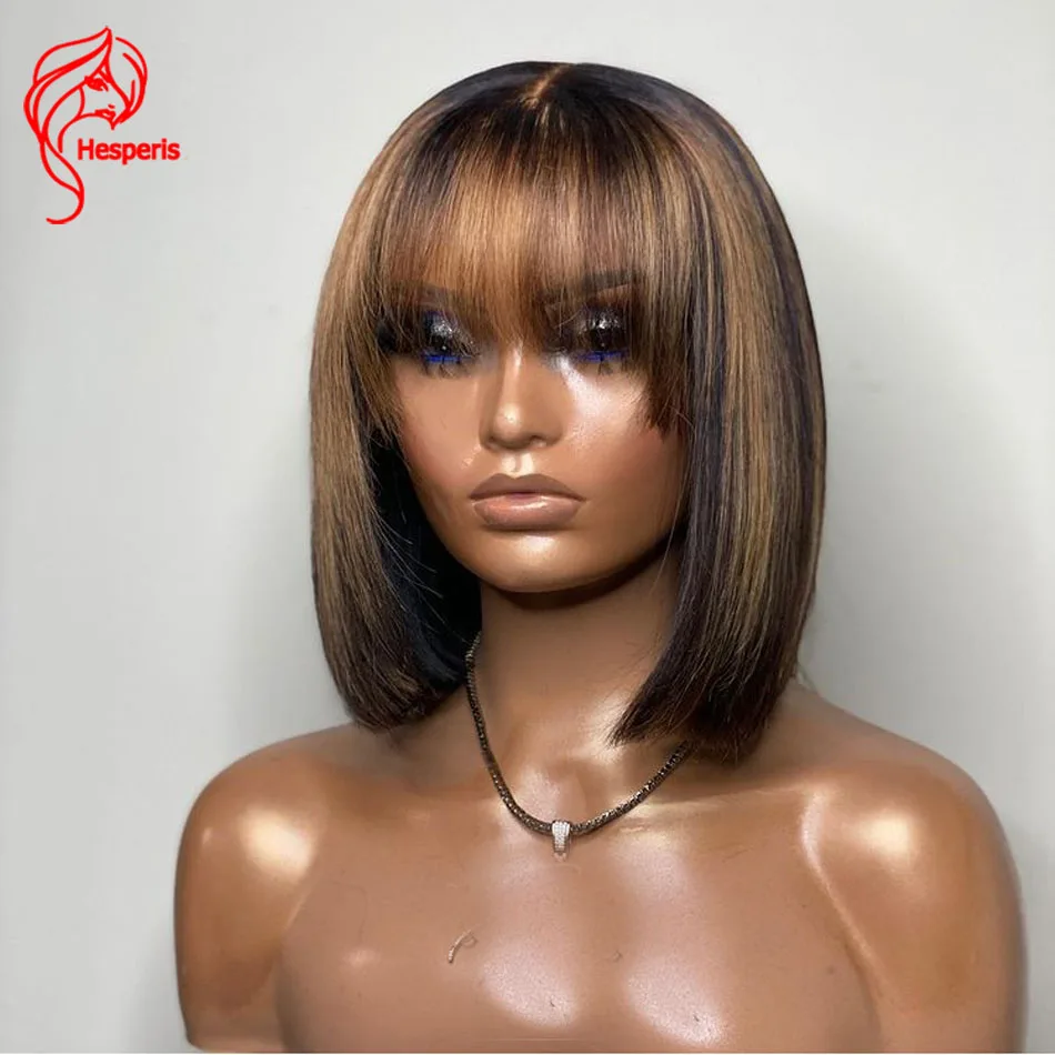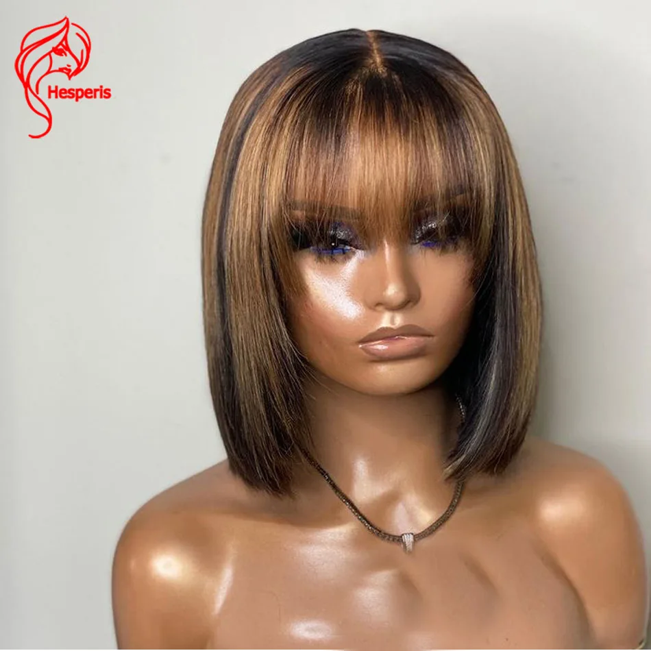 Hesperis блонд хайлайтер человеческие волосы парик с челкой бразильский Реми 13x1 T глубокая часть кружевные передние парики человеческие волосы короткий боб