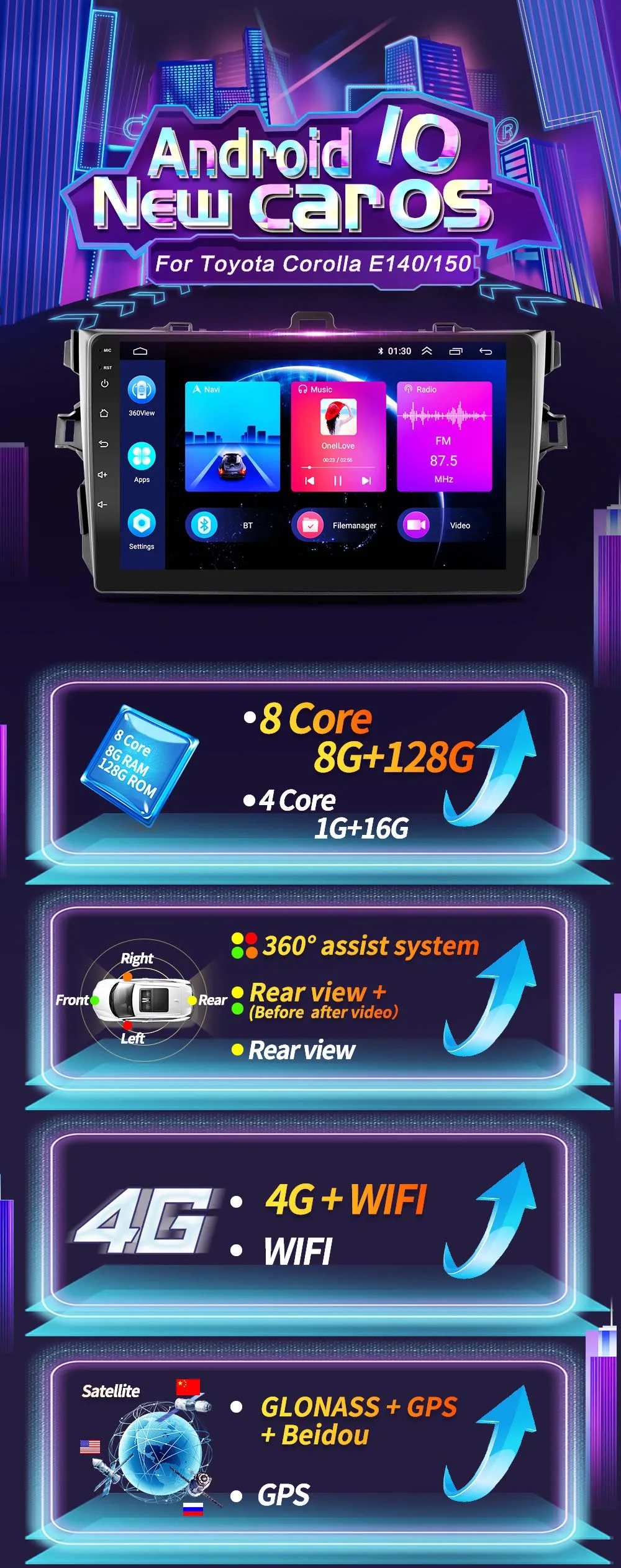 Мультимедийная магнитола 2DIN для Toyota Corolla E1401502006-2013, универсальная мультимедийная стерео-система на Android 10, 4G, с GPS, 9 "экраном, для Toyota Corolla