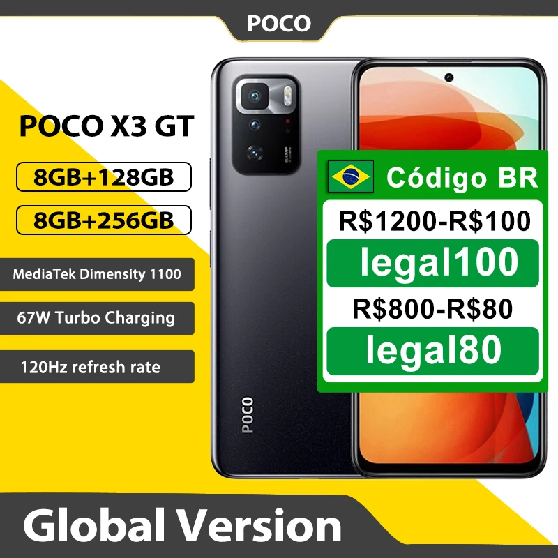 Смартфон глобальная версия POCO X3 GT, 8 ГБ, 128 ГБ256 ГБ, NFC, MTK 1100, 67 Вт, турбо-зарядка, 6,6 дюйма, 120 Гц, 5000 мАч, тройная камера 64 мп