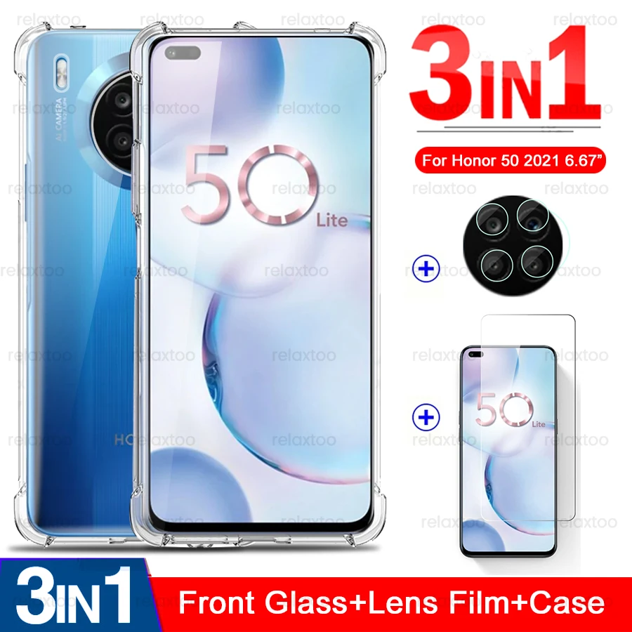 Чехол для Honor 50 Lite 3 в 1 прозрачный противоударный защитный чехол для Honer 50 Lite светильник стеклянный экран Защита объектива камеры Xonor 50 Lite