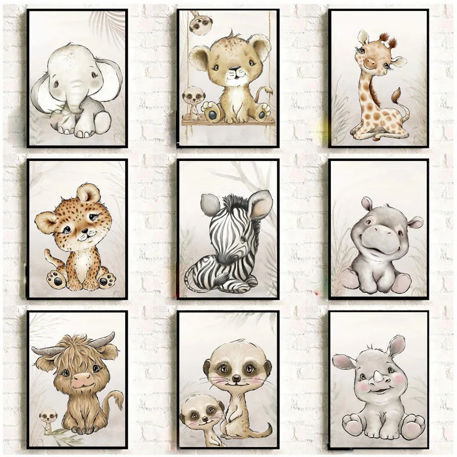 Милый жираф, львы, слон, Зебра, хорьк, бохо, детские настенные картины, Картина на холсте, скандинавские постеры и принты, декор детской комнаты