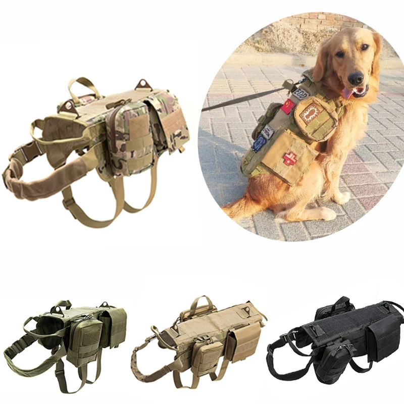 Тактическая шлейка для собак, военный жилет без натяжения, для дрессировки средних и больших собак, с чехлами