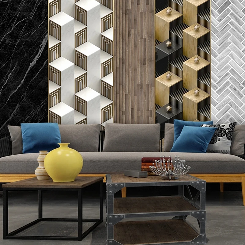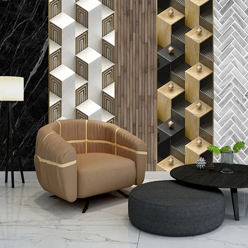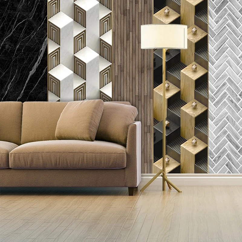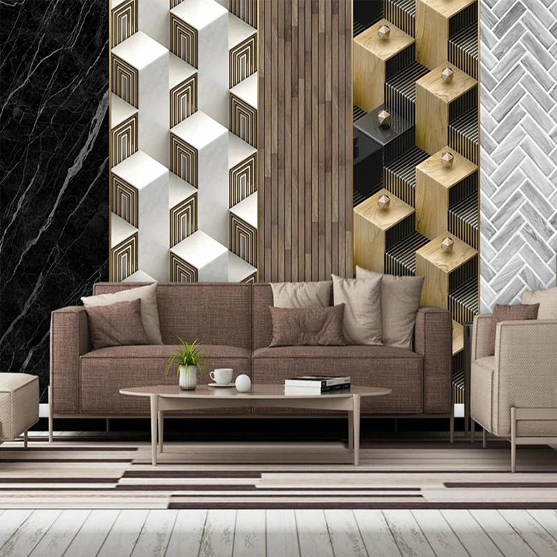 Настенная роспись под заказ, современный минималистичный геометрический дизайн, мрамор, камень, древесина, отделка стен, картина 3D