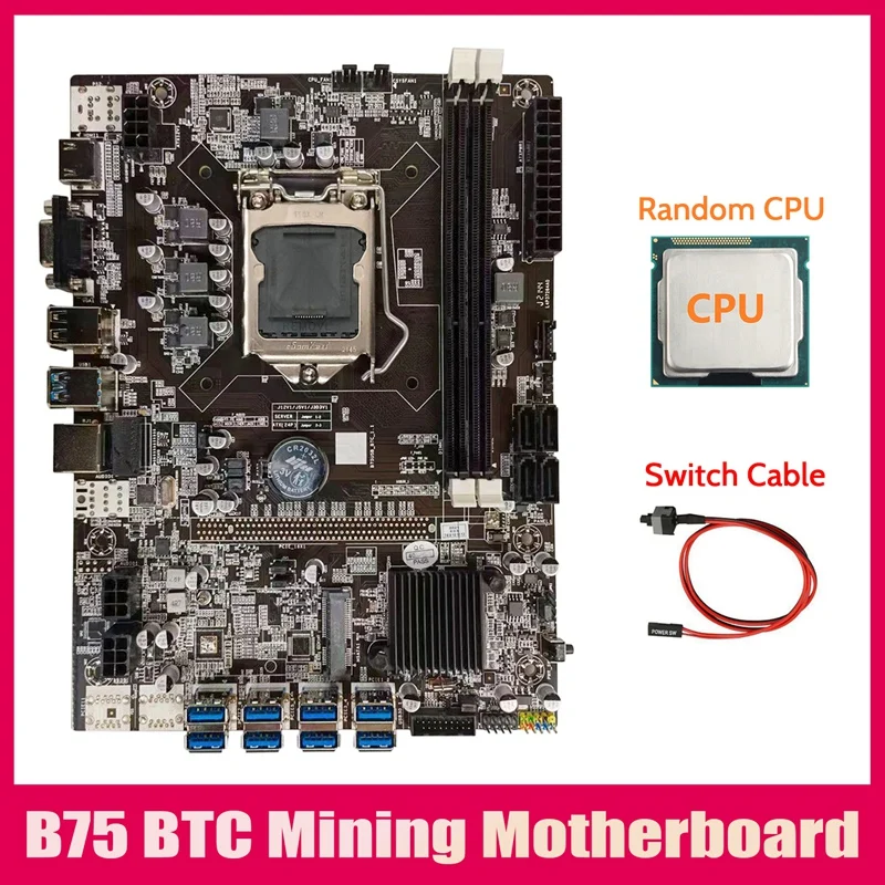Материнская плата B75 USB BTC для майнинга + ЦП + RGB вентилятор + ...