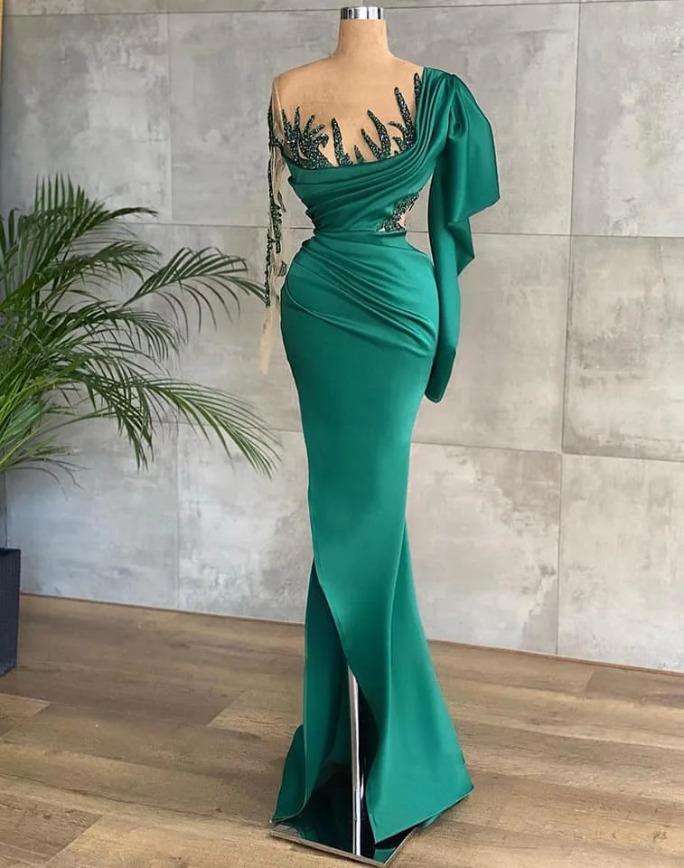 Женское вечернее платье-русалка, зеленое элегантное платье с длинным рукавом, блестками и разрезом, платье для выпускного вечера, индивидуальный пошив