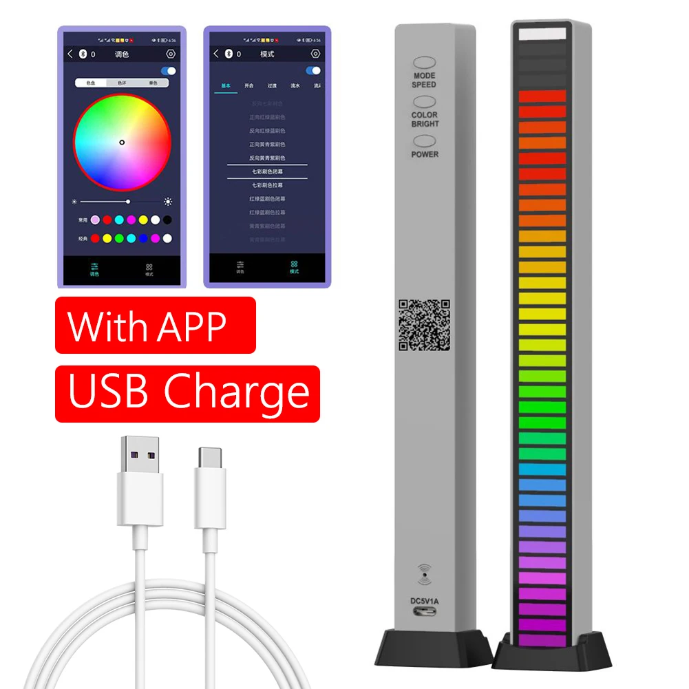 USB перезаряжаемая батарея управление через приложение RGB цветная трубка 40 светодиодный звукосниматель ритм полоска светильник музыка атмосфера окружающая лампа бар для автомобиля Вечерние