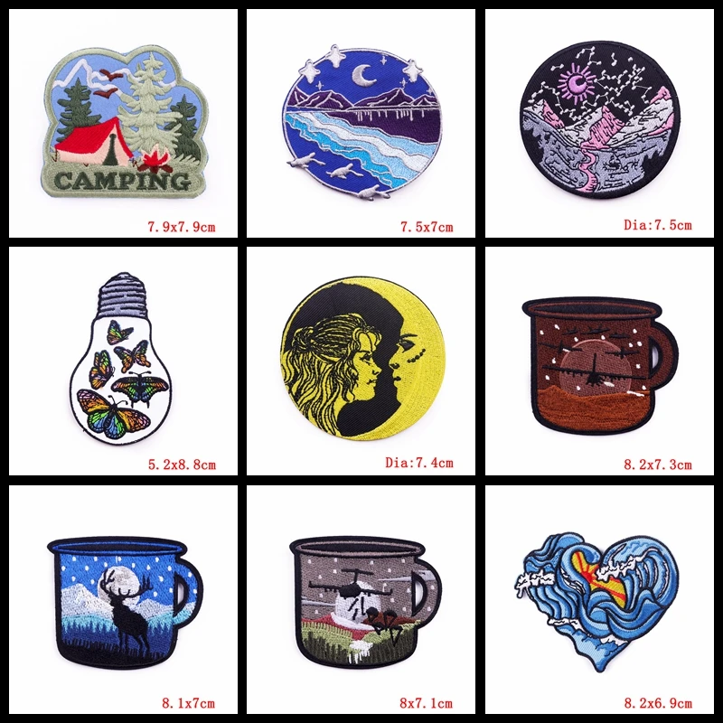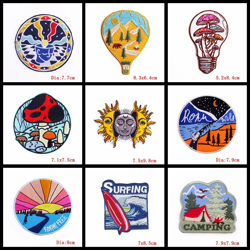 Аппликация в виде космических волн, приключения, патчи с вышивкой утюгом для одежды, наклейки, уличные нашивки с горами на одежду, сделай сам, 10 шт.
