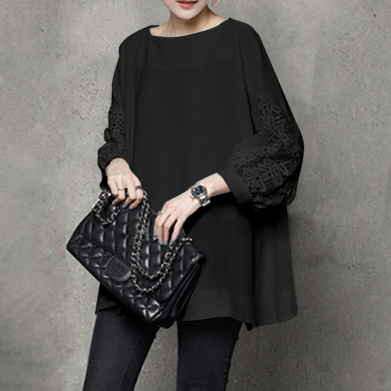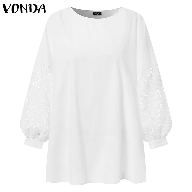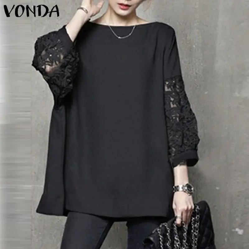 Элегантные рубашки VONDA, винтажные осенние женские блузки 2022, Осенние Лоскутные туники с рукавом 23, повседневные кружевные женские блузки для вечеринки