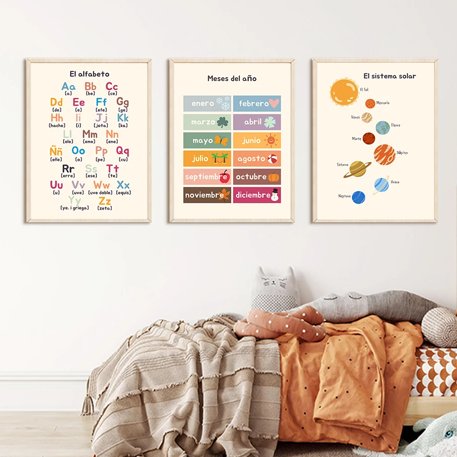 Планет космическая ракета цифры буквы детская стена искусство холст...