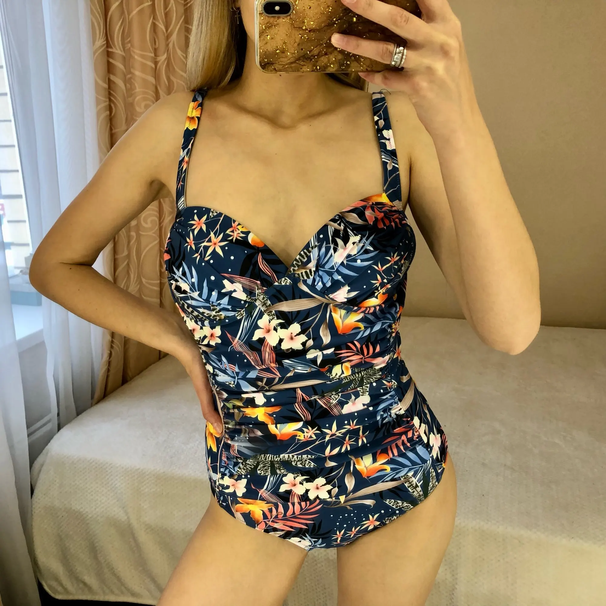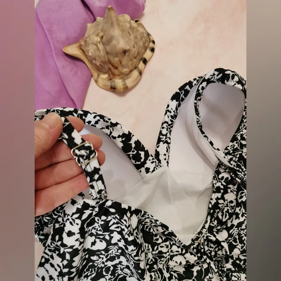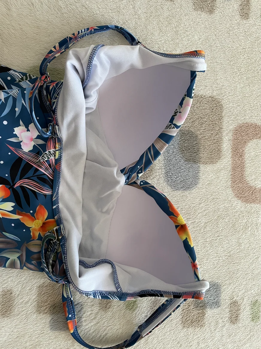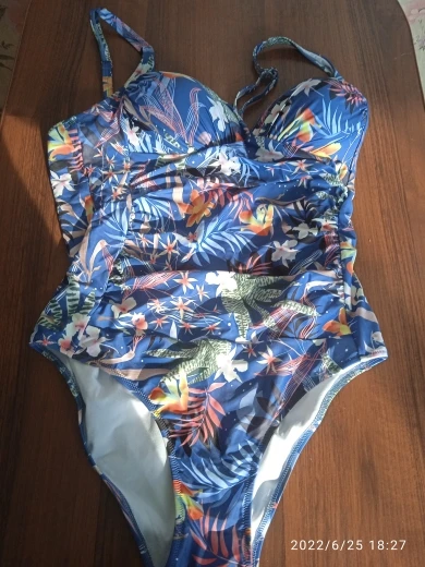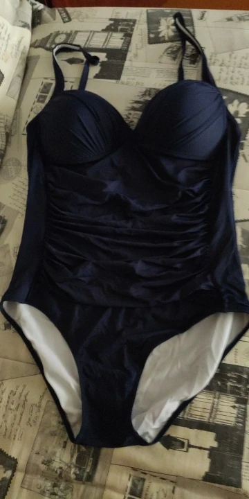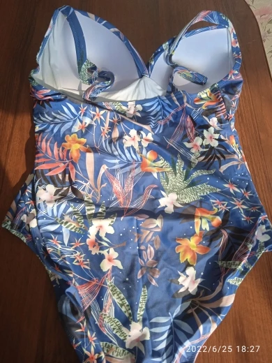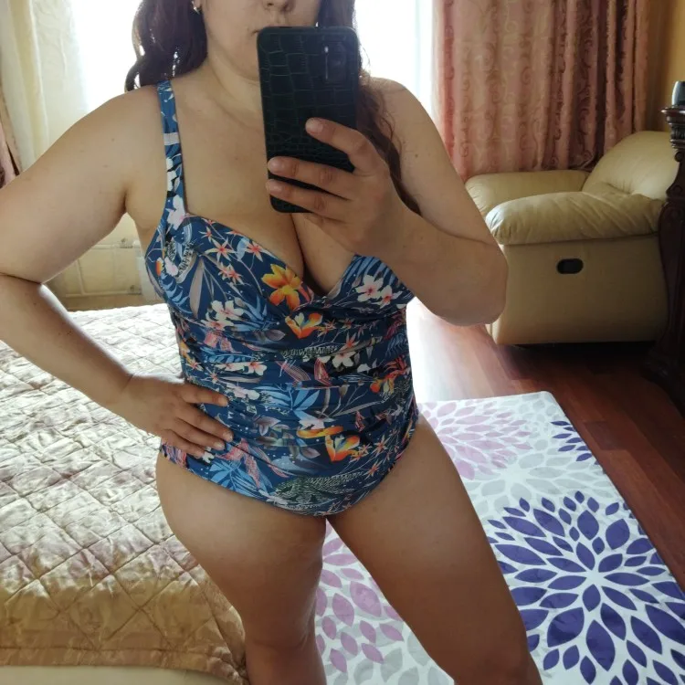 Отличный купальник! На русский 52-54 размер взяла XXL, ориентируясь на размерную сетку продавца. "Косточек" нет, это единственный минус, но лиф устроен в виде треугольной уплотненной "чаши", груди в ней вполне комфортно (мой размер груди 85C-D). Весь купальник двухслойный, в качестве подкладки эластичная белая сеточка. Нигде не просвечивает. В области живота внешняя ткань собрана складками, драпируя живот. Купальник рассчитан на довольно высокий рост, что редко для китайских магазинов, и это плюс. При моем росте 160 см регулируемые лямки пришлось максимально укоротить. Удобно, что бретельки сзади отстегиваются и регулируются по длине, фурнитура металлическая. Ткань эластичная, тянется очень хорошо. Я трижды покупала купальники на Али, этот купальник самый удачный. Заказала к нему в другом магазине пляжную рубаху для комплекта, думаю, на пляжный сезон получился хороший комплект. И магазин и товар рекомендую!