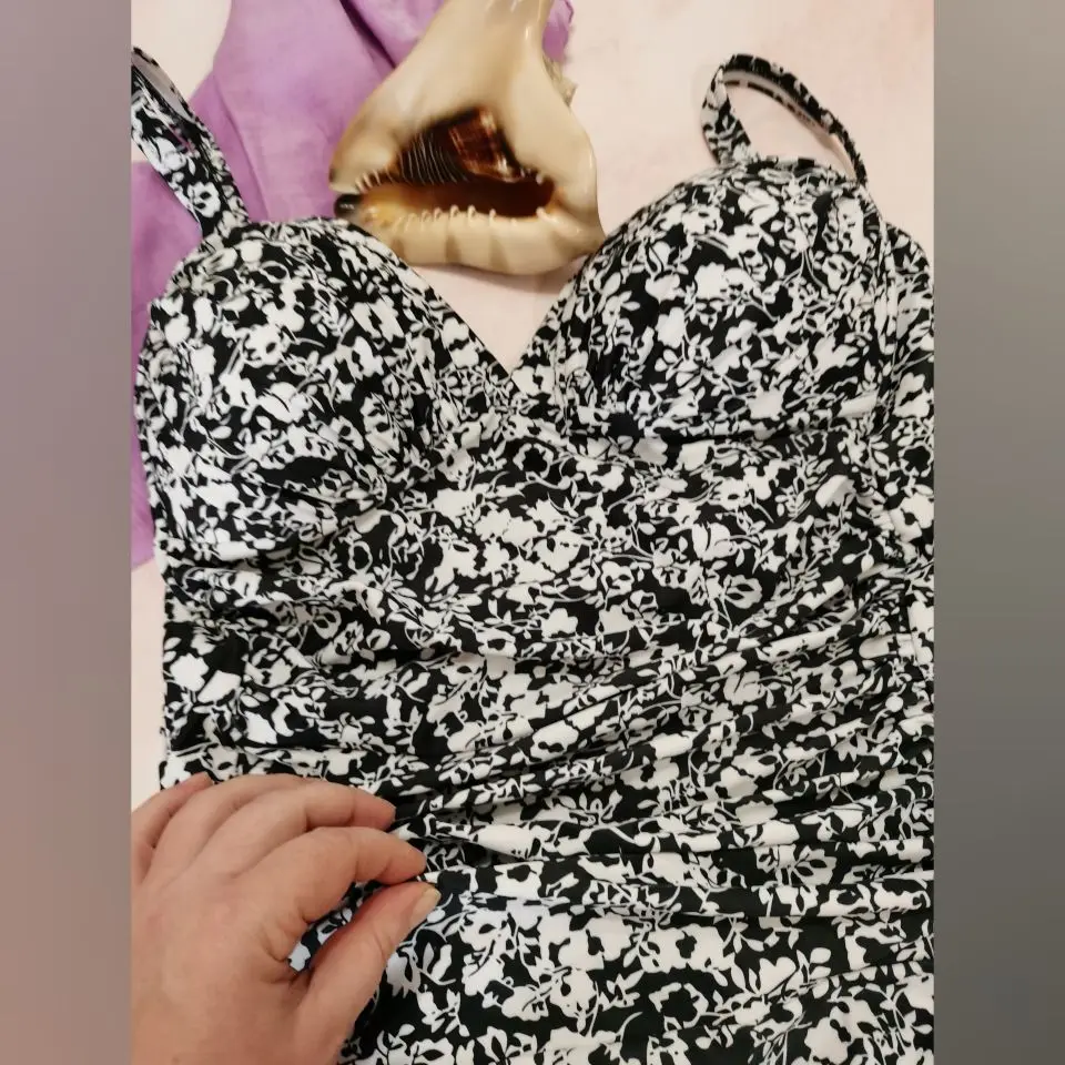 Мой второй купальник из этого магазина: отличная полноразмерная модель. Подойдёт на любую фигуру. Очень удачно драпируется на животе. Чашки удобные с хорошей поддержкой, бретели регулируются до нужной длины. Купальник двухслойный, не просвечивает - подкладка из мягкой сетчатой ткани. Приятный принт, плотная качественная ткань. Идеальный пошив, фабричное качество, ластовица с защитной наклейкой. Один из лучших магазинов купальников. Рекомендую.