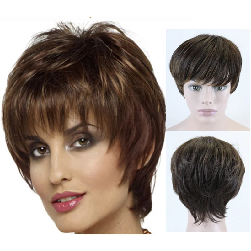 Причудливые Женские синтетические волосы W, короткие черные, коричн...