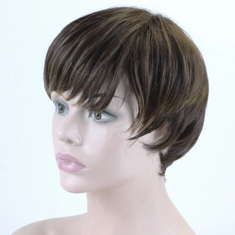 Женский прямой короткий натуральный парик JOY BEAUTY, Стильный парик с вырезами фея, синтетические волосы, коричневый термостойкий парик для женщин