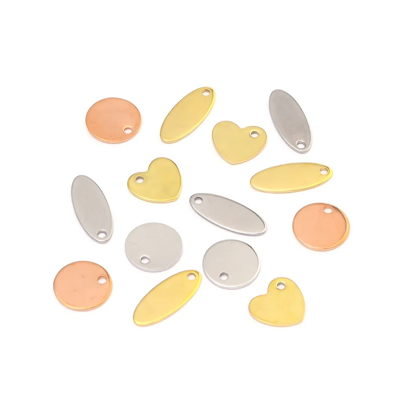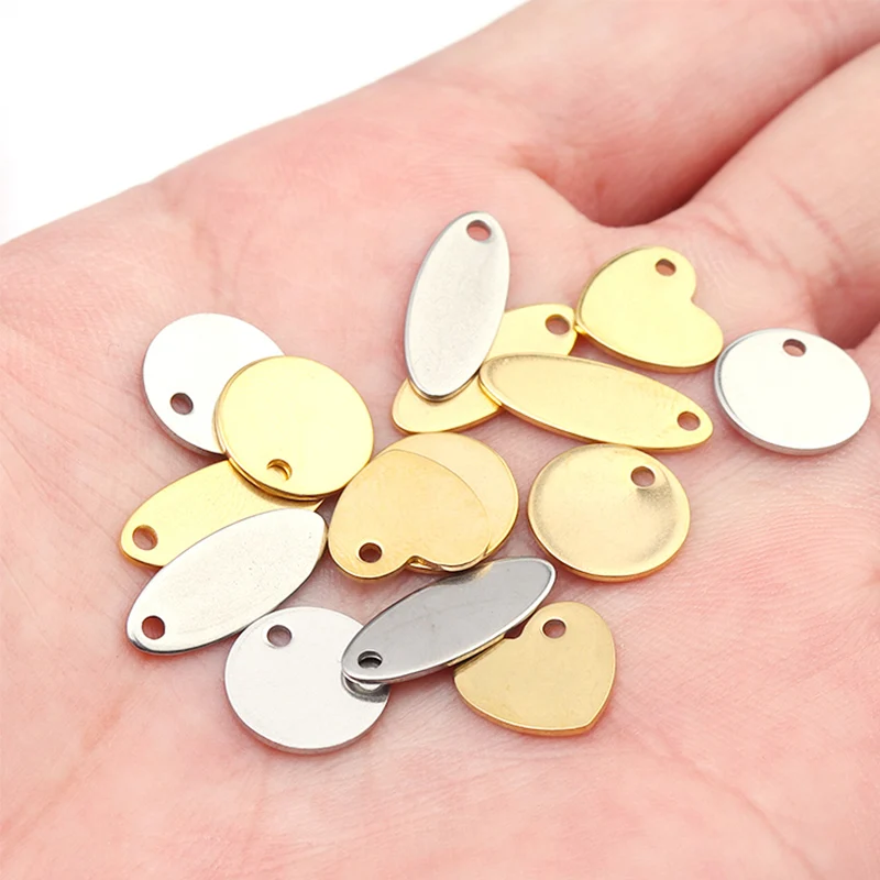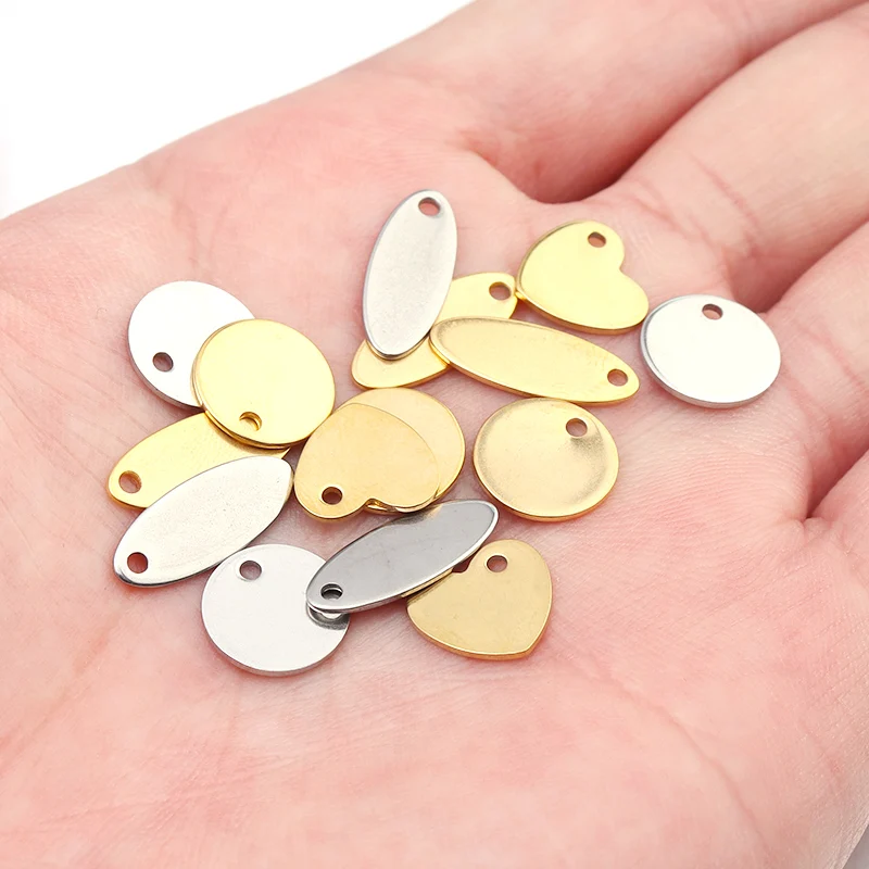 Подвески из нержавеющей стали с золотым круглым сердцем 20 шт., штампованные заготовки, бирка для собаки, подвеска для ожерелья, сделай сам, изготовление ювелирных изделий, поддержка гравировки