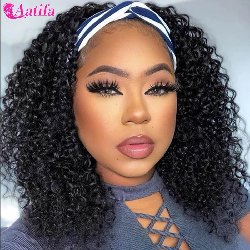 Кудрявый кудрявый парик с головной повязкой 100% человеческие волосы парик бразильские волосы Remy волосы 30 дюймов 180% Плотность бесклеевая Aatifa волосы для женщин