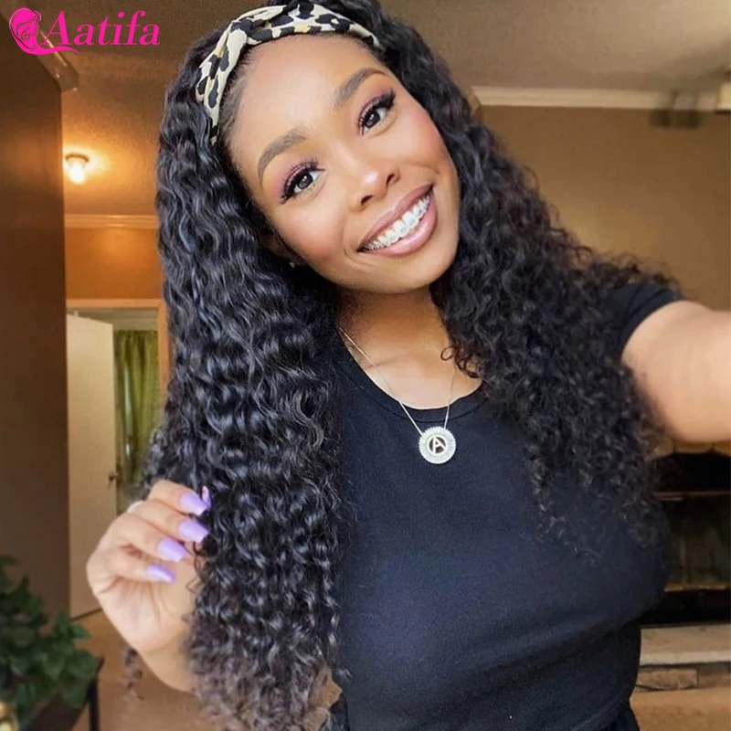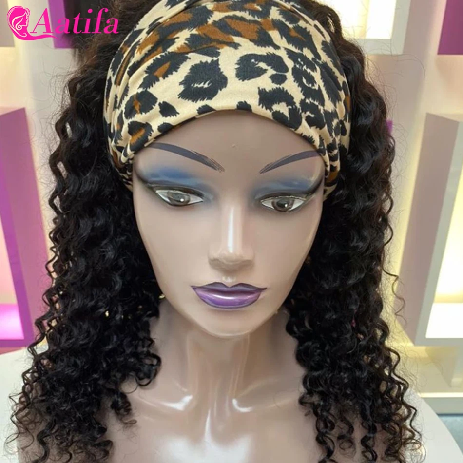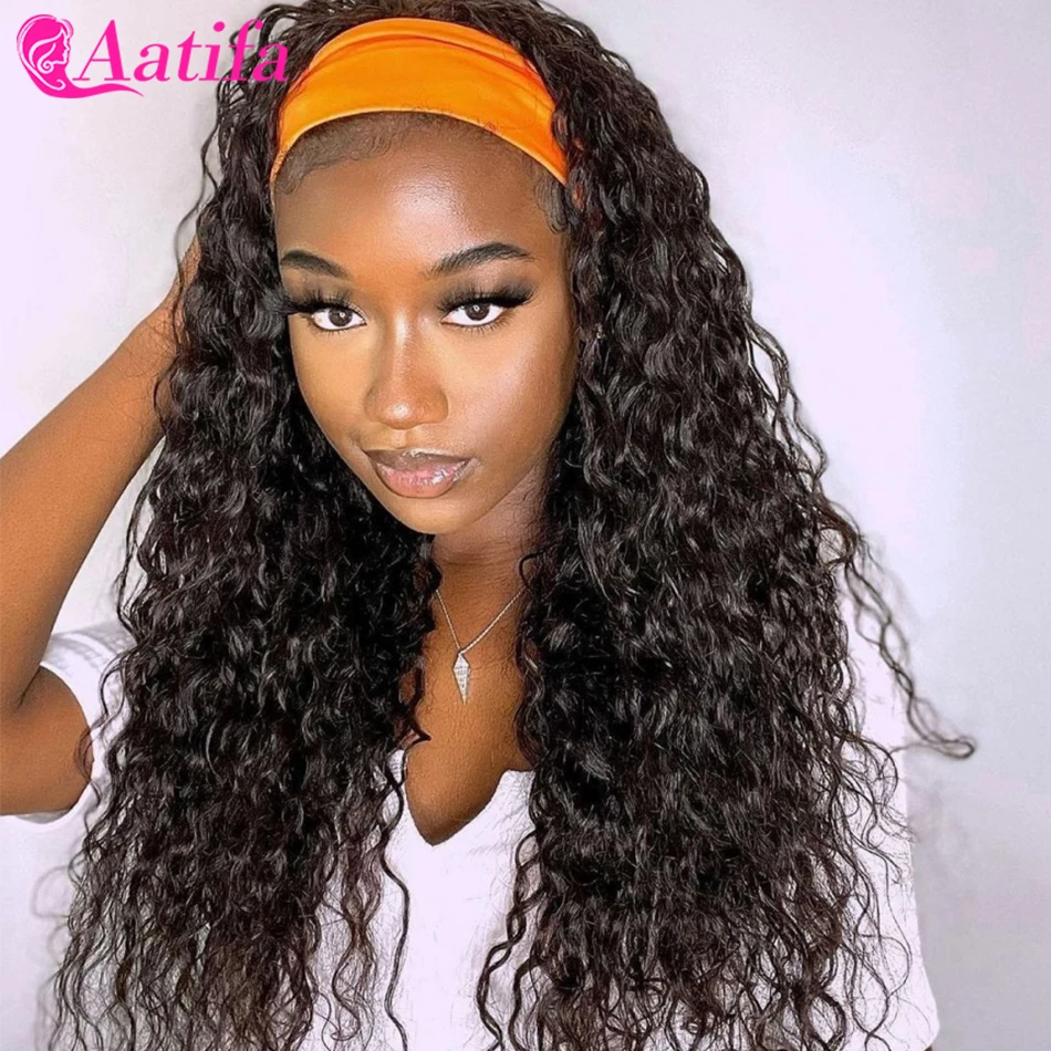 Парик с головной повязкой человеческие волосы парики свободные глубокая волна сцепление повязка манекен для шарфа парика естественный цвет 180% Плотность для черных женщин Aatifa