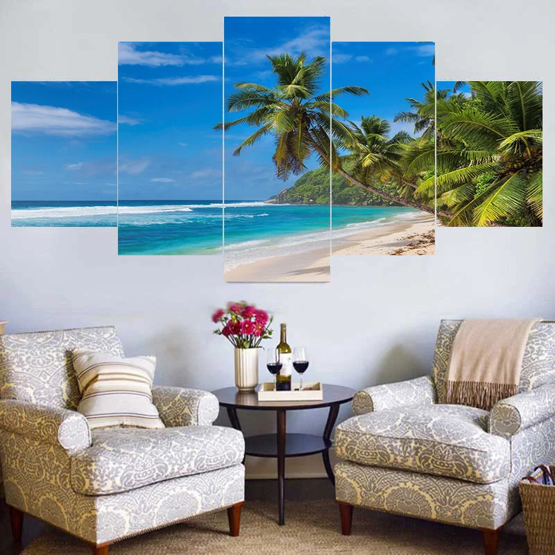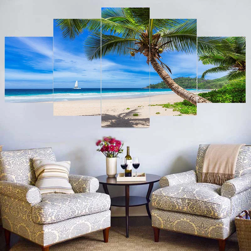 5 шт., холст, искусство, острова, пальма, океан, солнечный свет, пейзаж, живопись, настенные картины для гостиной, Декор, модульная