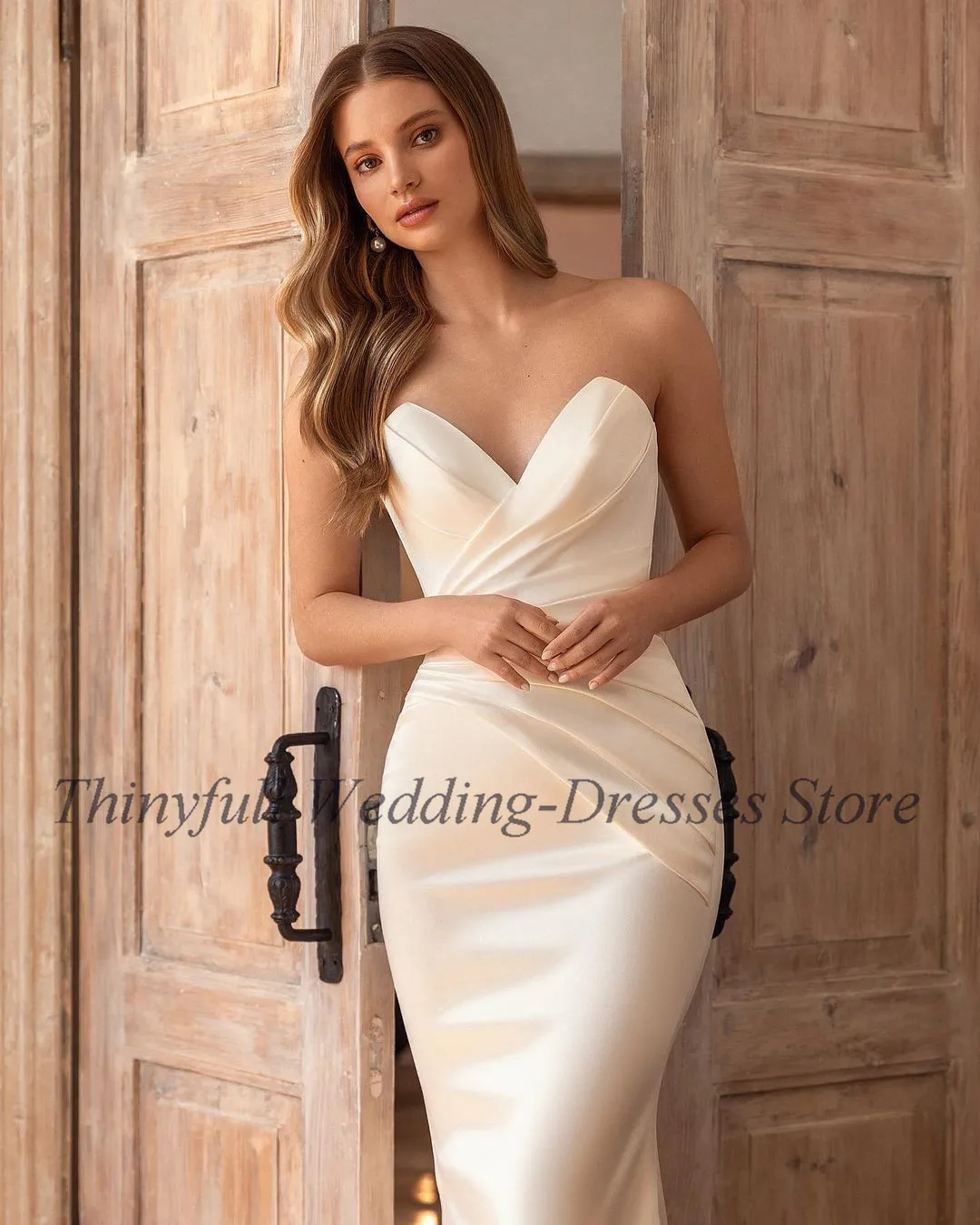 Thinyfull, 2 шт., свадебные платья-русалки, Мягкая атласная Съемная юбка, вечерние платья для невесты, свадебные плиссированные женские платья 2022