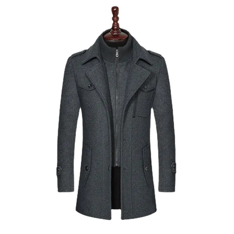 Модная зимняя мужская шерстяная плотная куртка с двойным воротником, однобортный Тренч, мужской размер M-3Xl, брендовая теплая мягкая куртка