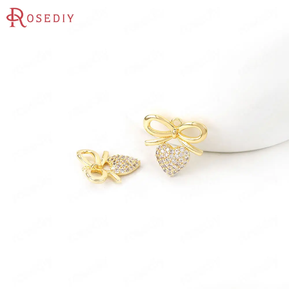 Латунный и циркониевый бант, 4 шт., 14x13 мм, 24 к золотого цвета, аксессуары для изготовления ювелирных изделий сделай сам