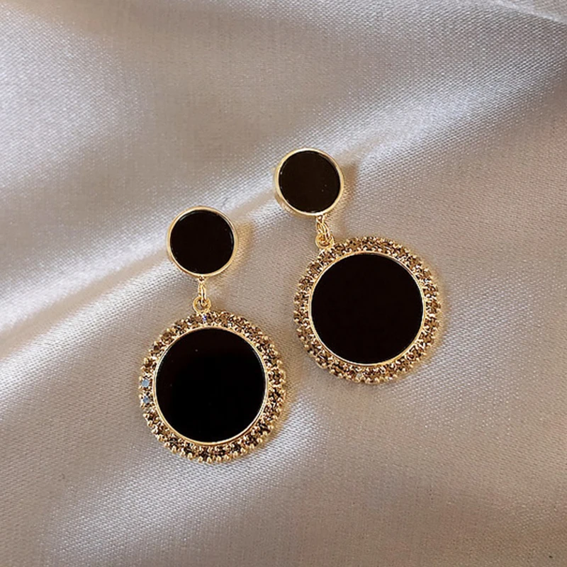 Женские серьги-гвоздики с кристаллами, черного цвета