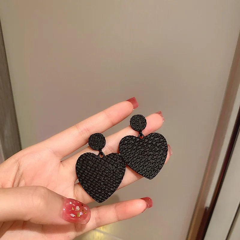 Двойные черные серьги-подвески в форме сердца для женщин, масляные ...