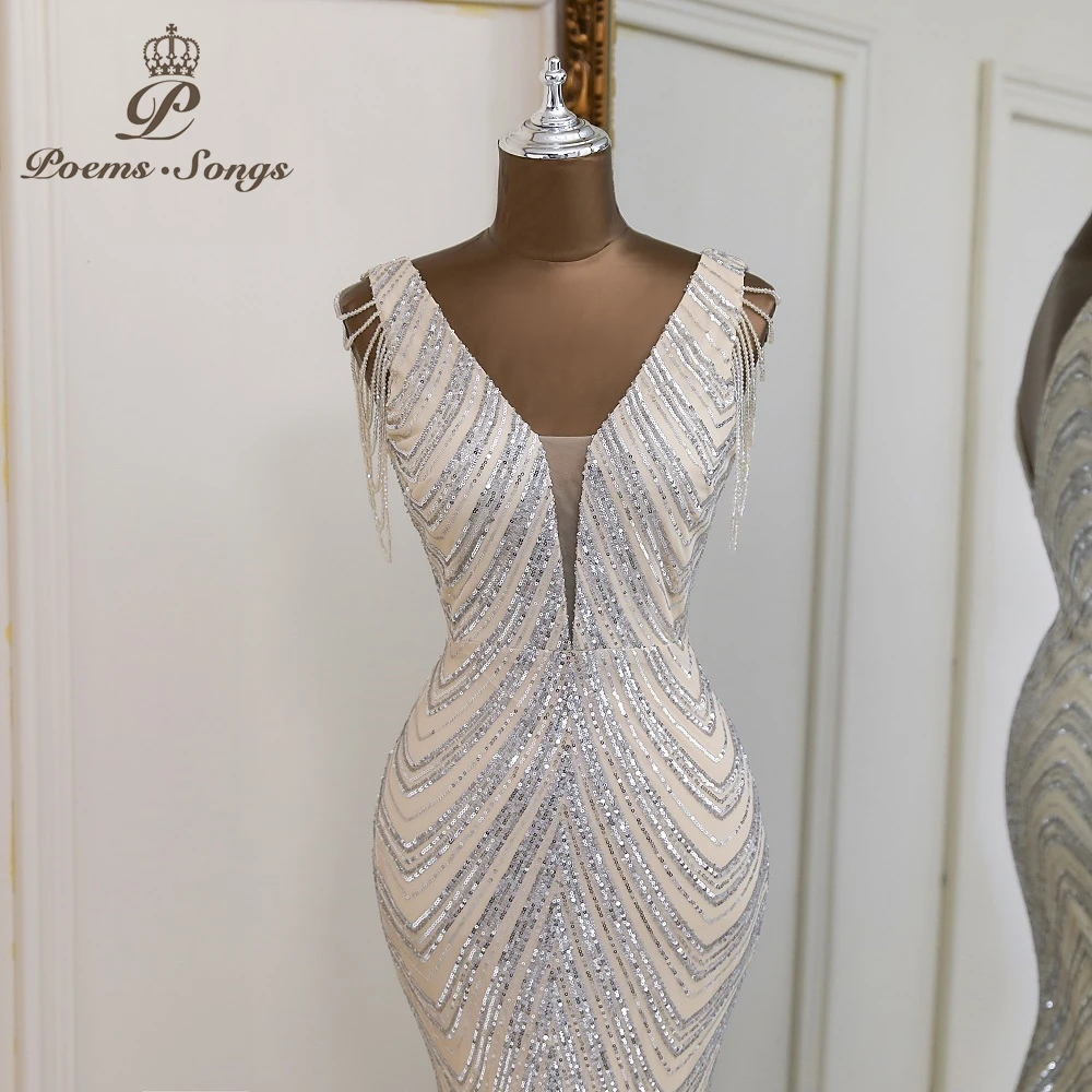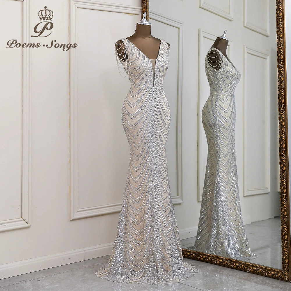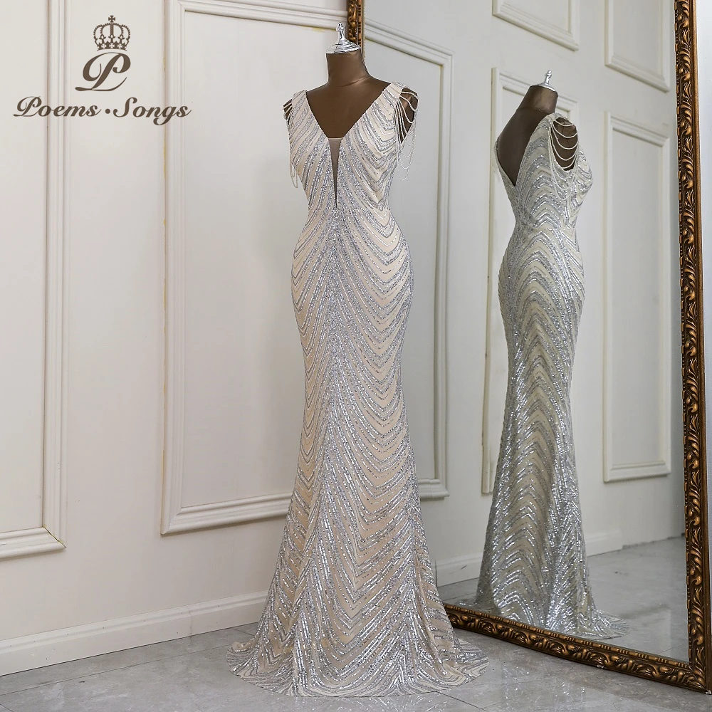 Женское вечернее платье-русалка, сексуальное длинное платье с глубоким V-образным вырезом для выпускного вечера