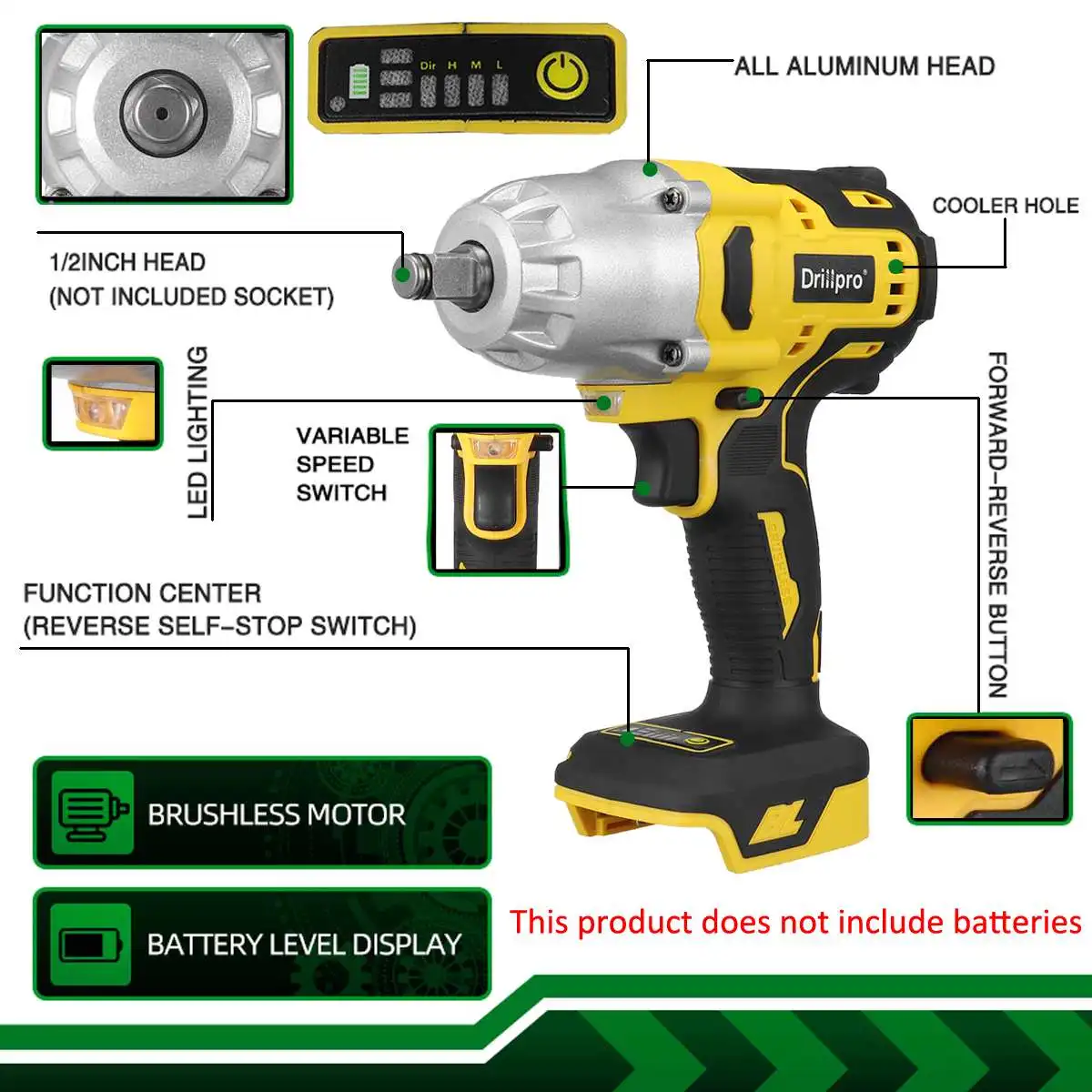 Особенности-Бесщеточный двигатель.-Светодиодный индикатор работы.-Большой крутящий момент используется для грузовых шин.-Большой крутящий момент, разборка шин, легко справиться.-800N.M высокий крутящий момент, плавный Переключатель изменения скорости.-Мощный электрический гаечный ключ, многоцелевой, супер мощный.-Вал из вольфрамовой стали, высокая твердость и износостойкость.-Подходит для строительных площадок, технического обслуживания, деревообработки и т. Д.-Переключатель вперед/назад/замок, поддержка движения вперед/назад и безопасная блокировка.Посылка в комплекте1 х электрический ключ(Без аккумулятора и зарядного устройства)