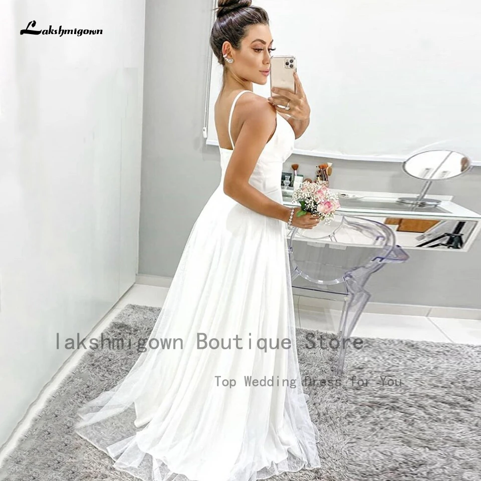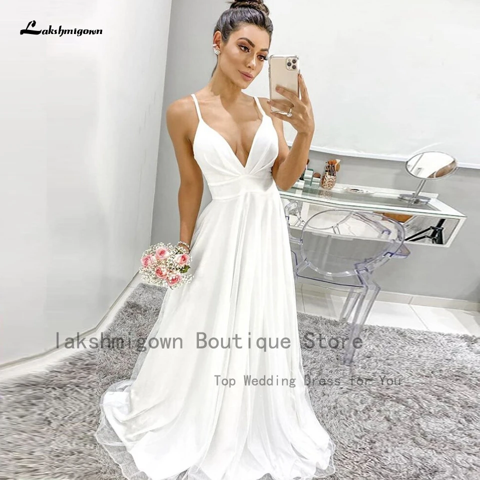 Женское свадебное платье Lakshmigown, ТРАПЕЦИЕВИДНОЕ ПЛАТЬЕ на бретелях-спагетти, сексуальное Белое пляжное свадебное платье для невесты, лето 2022