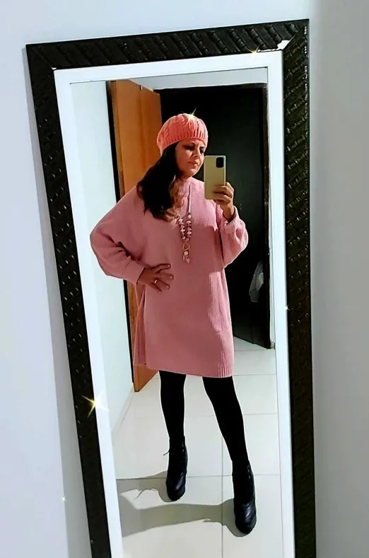 Женское трикотажное платье-свитер с высоким воротником и длинным рукавом