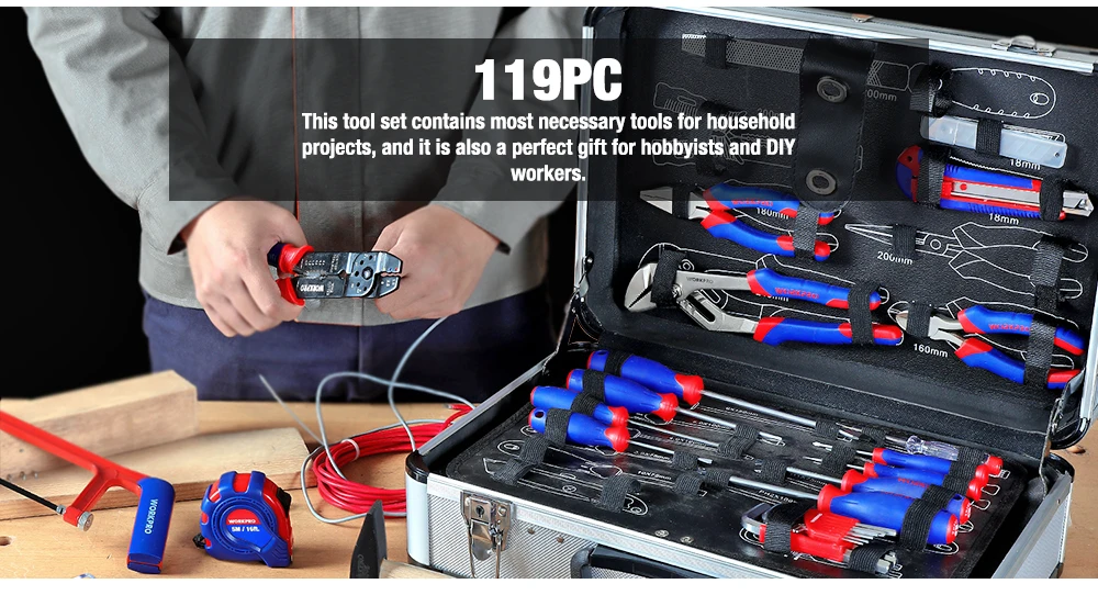 119 шт., набор ручных инструментов с алюминиевым ящиком