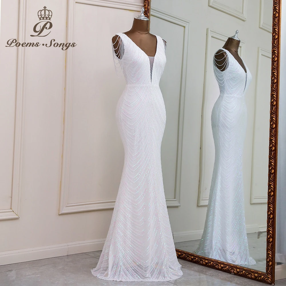 Женское вечернее платье-русалка, белое длинное платье для выпускного вечера