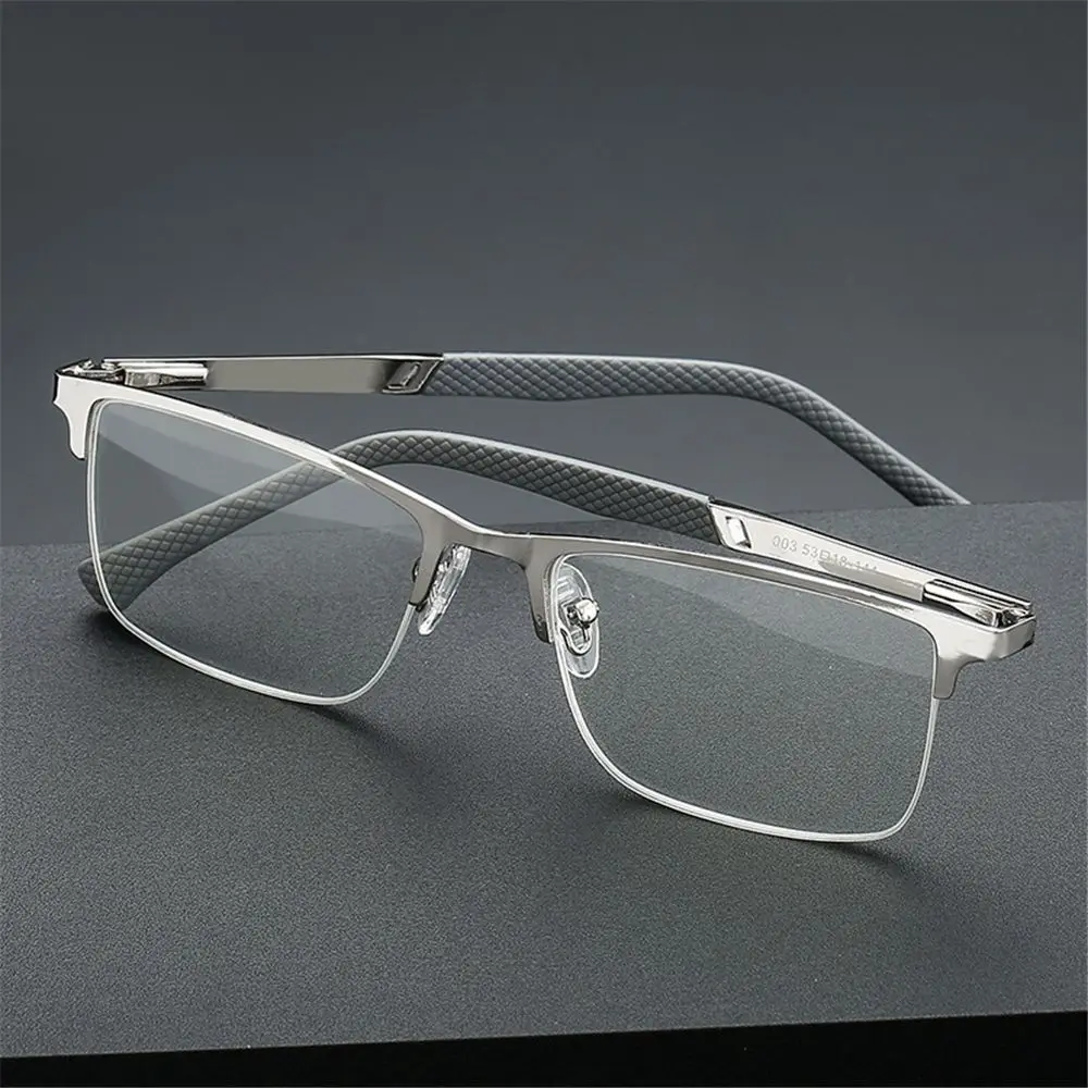 Новинка, мужские металлические очки в полуоправе с защитой от сисветильник, очки для чтения в деловом стиле, мужские Оптические очки в металлической оправе