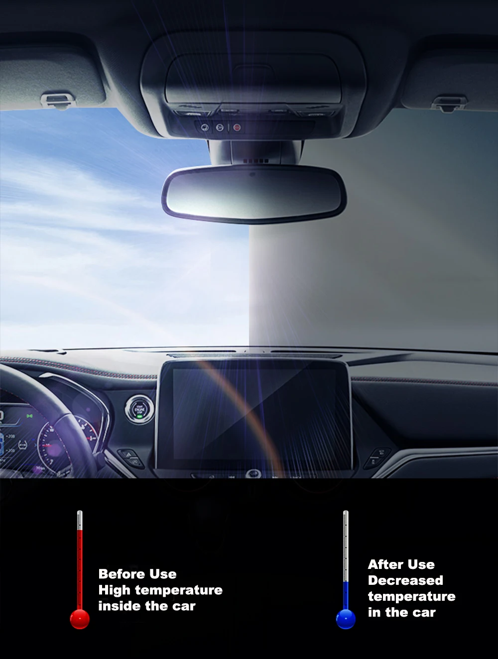 (2) Алюминий с высокой отражательной способностью хорошо подходит для защиты от солнечных лучей и УФ, сохраняет автомобиль прохладным в жаркий день.