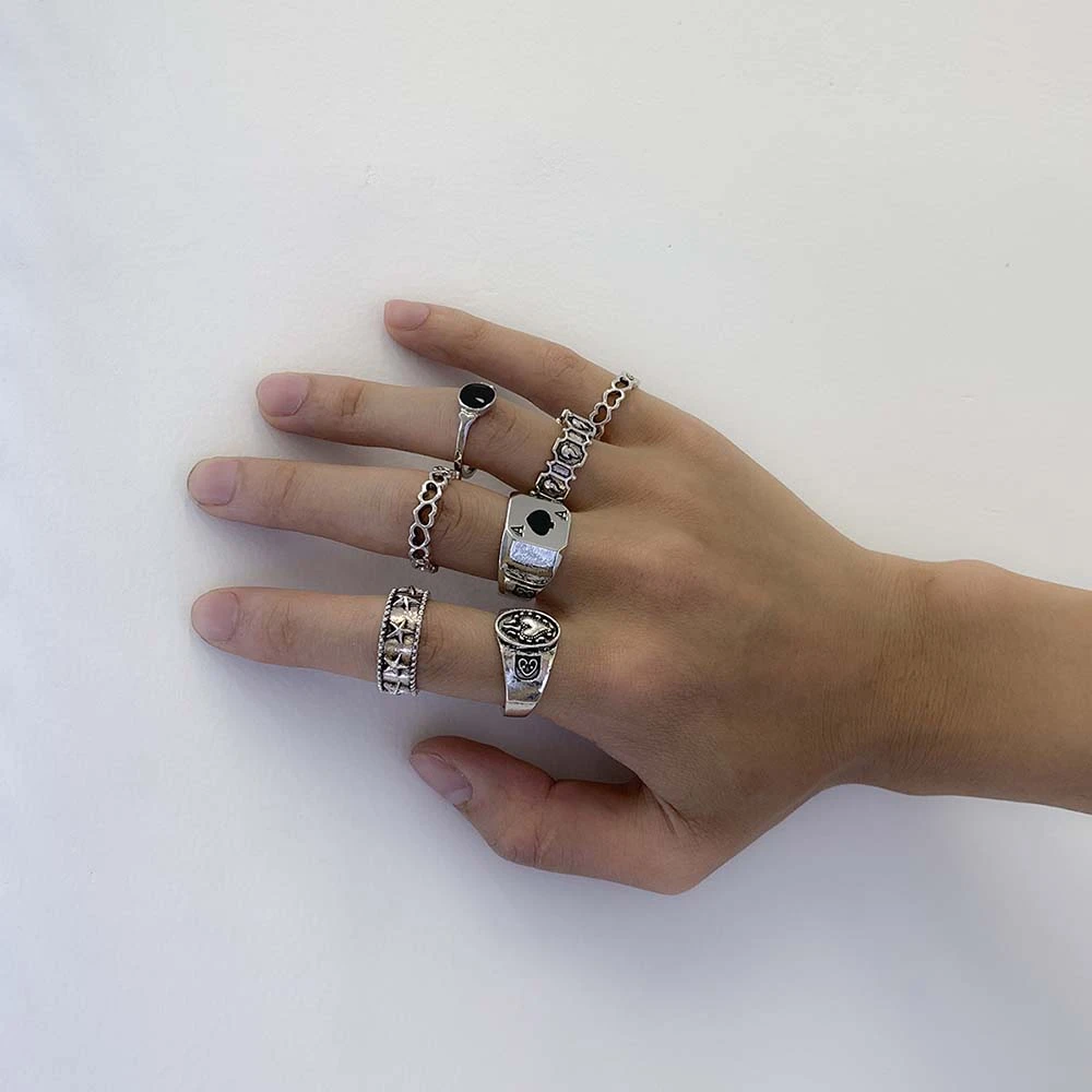Модный комплект колец с покрытием для женщин в стиле панк для девушек ювелирные изделия для суставов в винтажном стиле Простые Кольца в форме пики кольца в форме сердца оптовая продажа