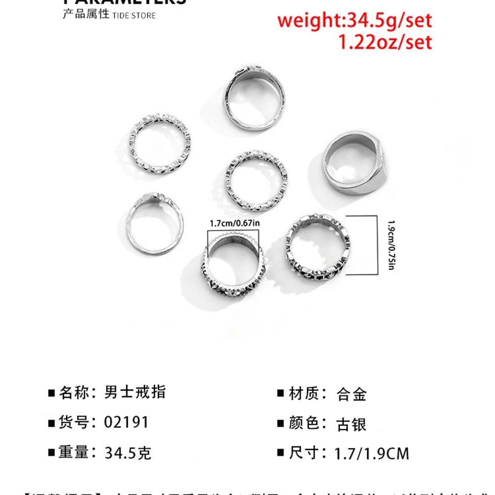 Набор колец в винтажном стиле для мужчин и женщин, серебряные кольц...