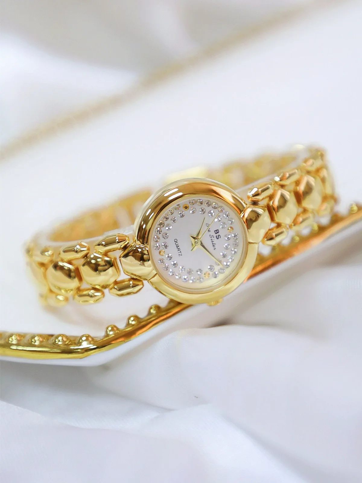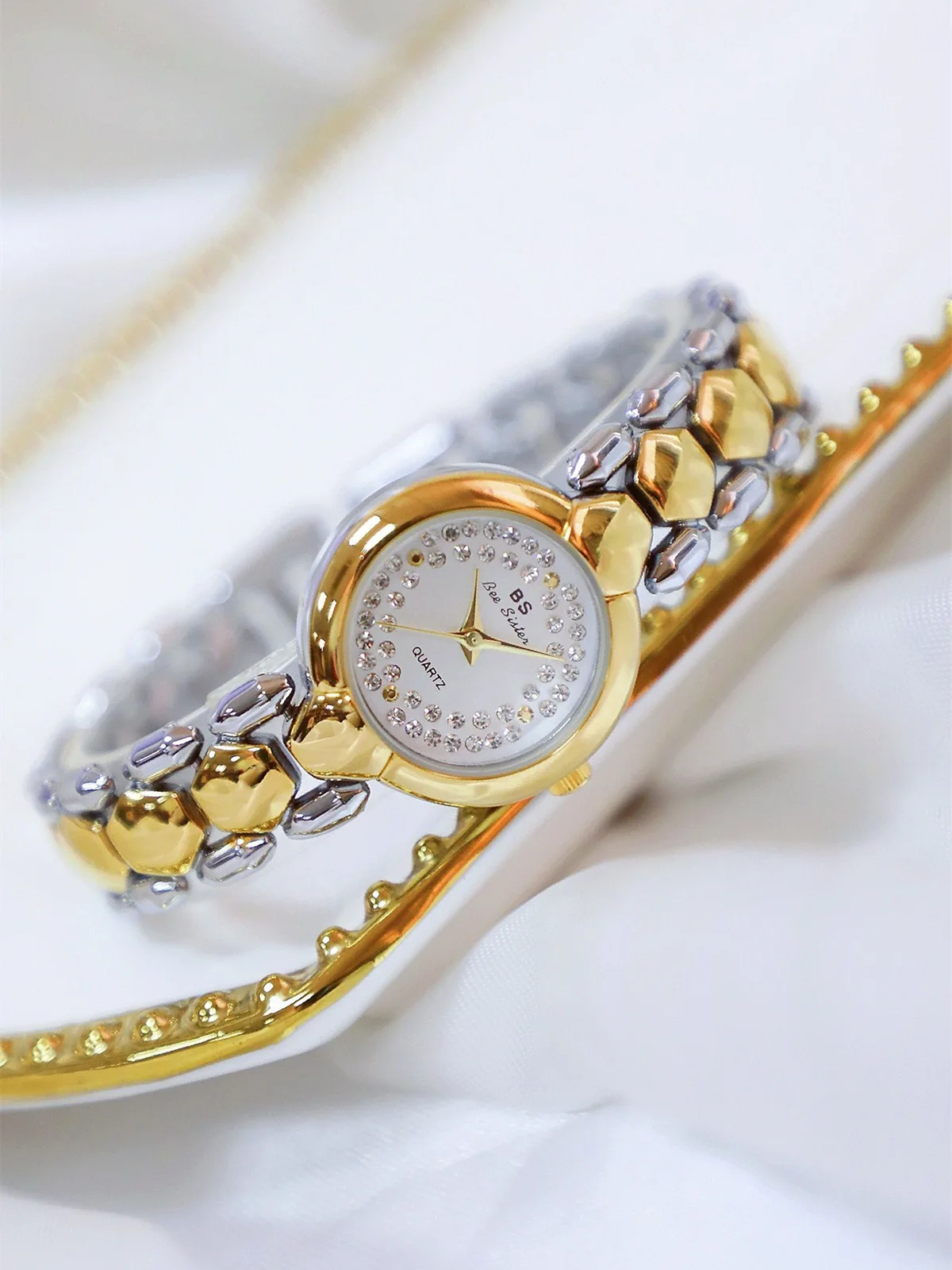 Часы наручные Bs Bee Sister женские с бриллиантами, элегантные золотистые элегантные, с маленьким циферблатом, с платьем, 2022