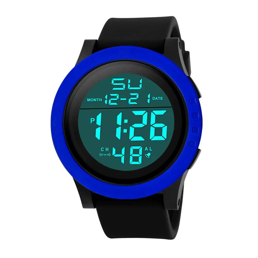 Силиконовые цифровые часы, мужские спортивные водонепроницаемые и влагостойкие электронные часы, светящийся дисплей, будильник, секундомер, таймер