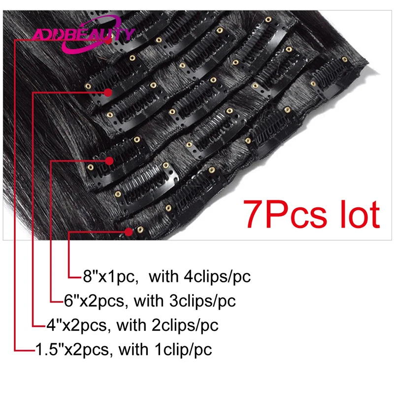 Прямые бразильские 7 шт. заколки для наращивания человеческих волос