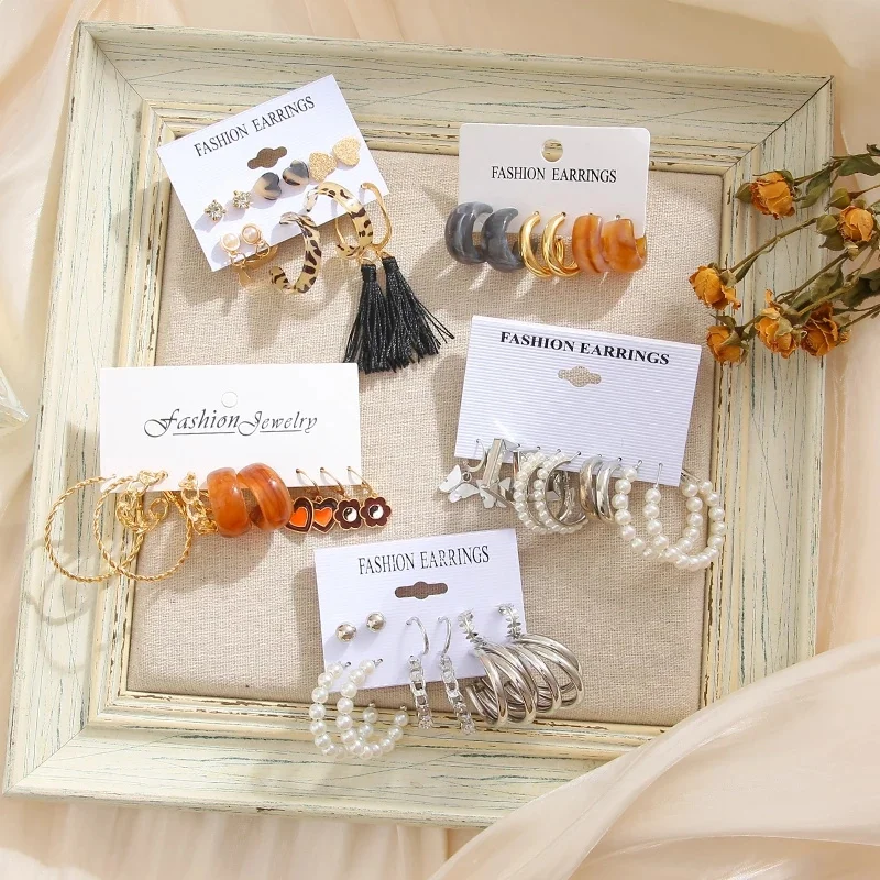 Набор винтажных серег с жемчугом, бабочкой, леопардовым принтом, дл...