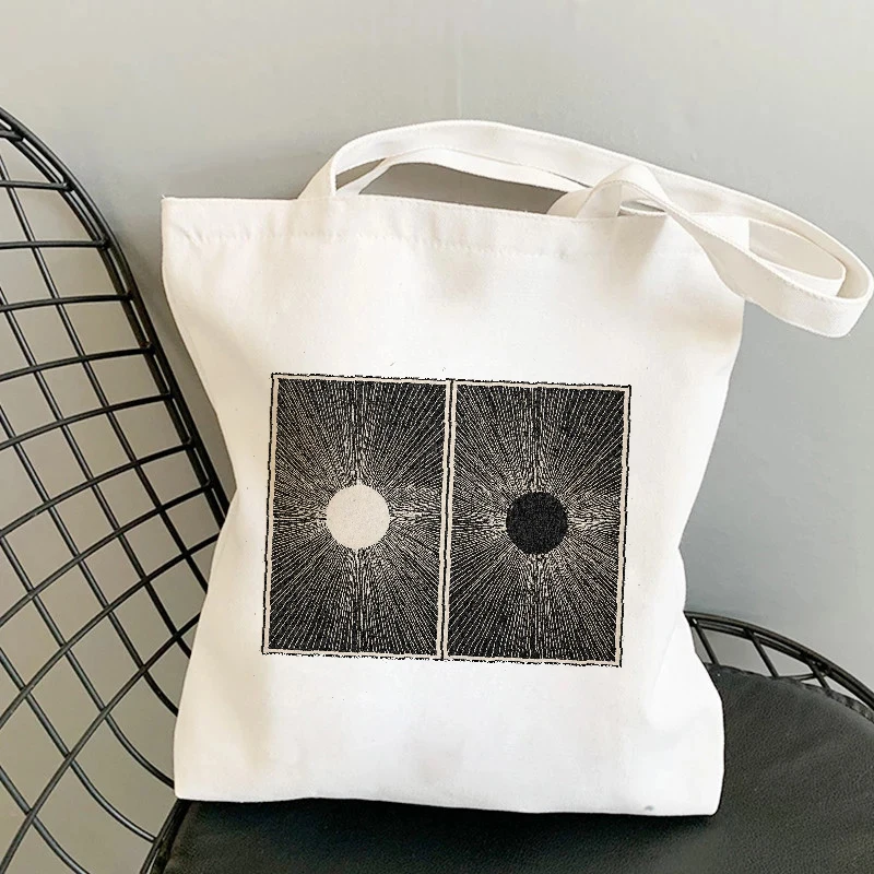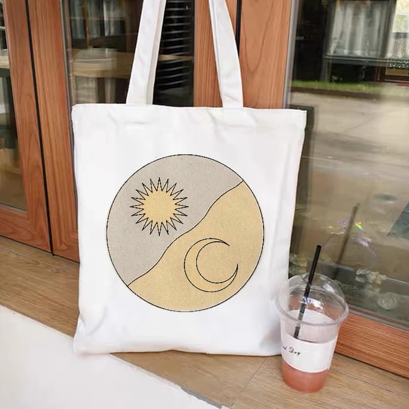 Холщовая Сумка для покупок для женщин, тканевая Сумочка для книг с принтом Солнца и Луны, Женская эко-сумка-тоут, многоразовые мешки для продуктов