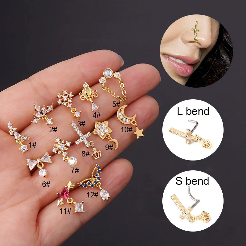 1 шт. носовые шпильки для пирсинга ювелирные изделия для тела манжеты для женщин съемные манжеты для ушей 20 г из нержавеющей стали пирсинг Луна крест серьги-гвоздики